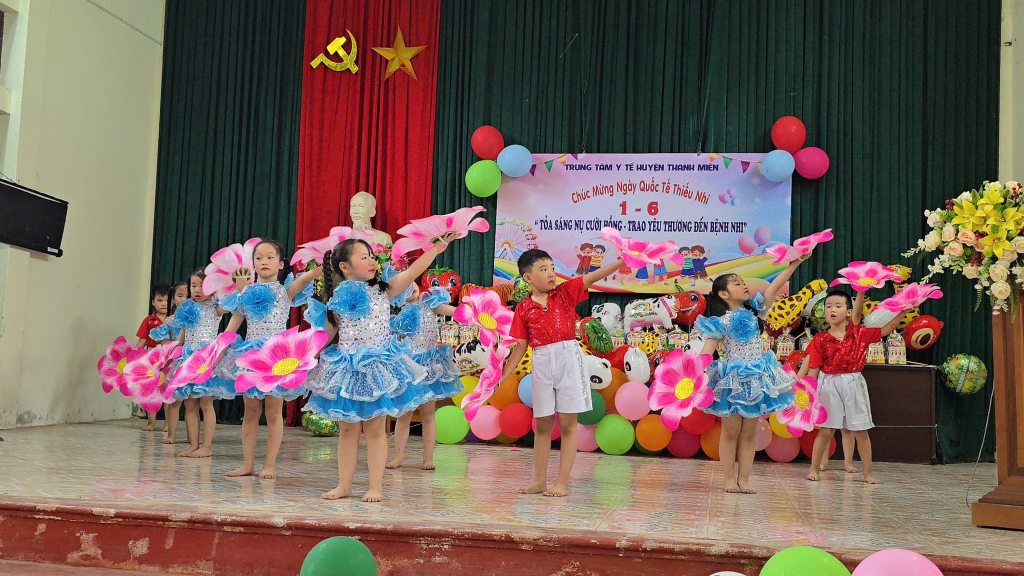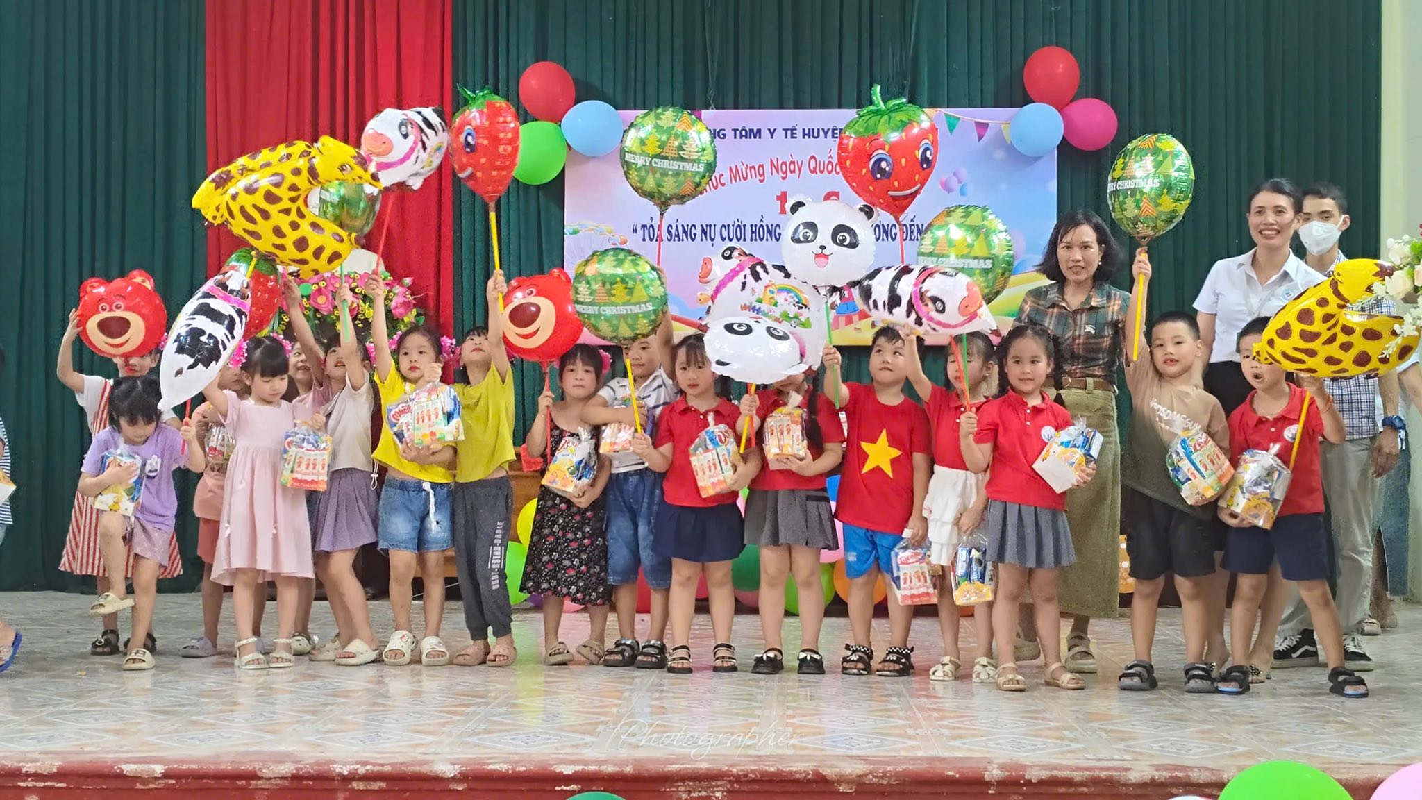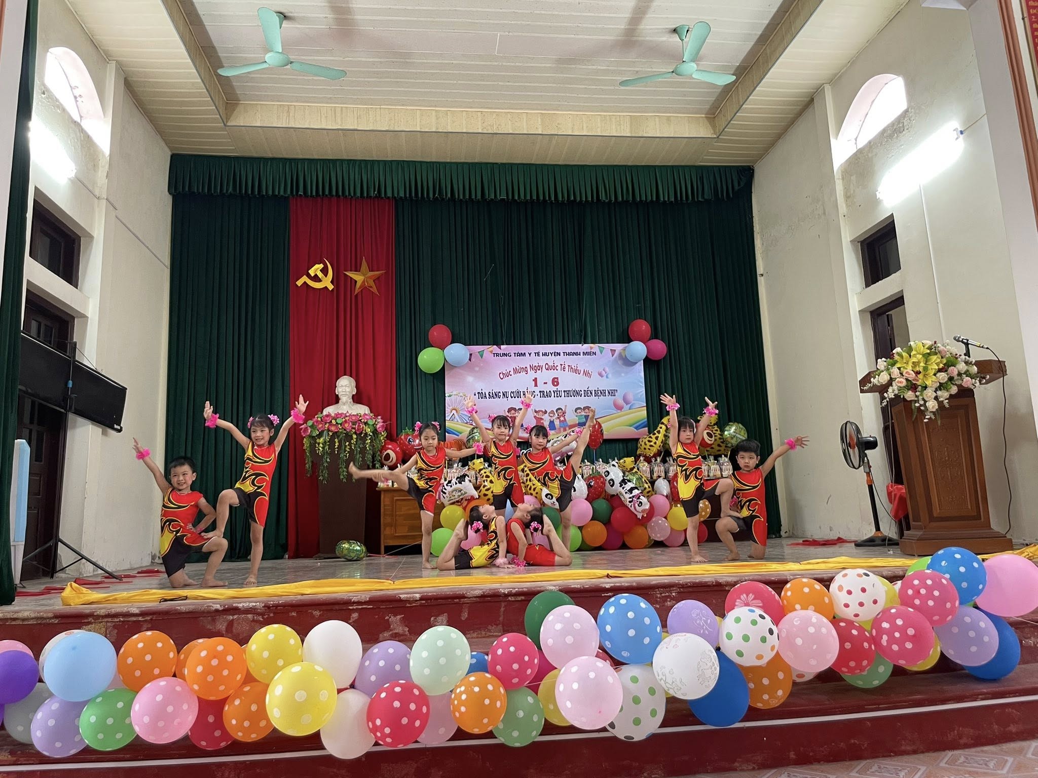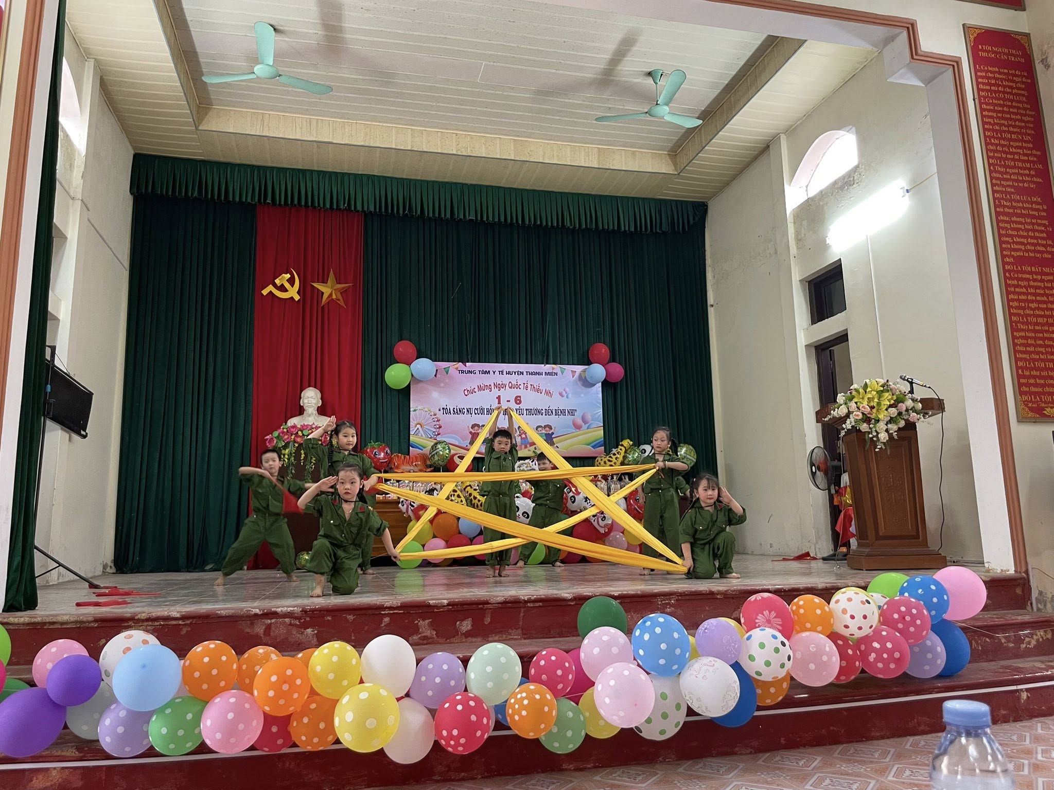Không khí Trung tâm Y tế rộn ràng với những tiết mục văn nghệ đáng yêu do chính các em nhỏ đến từ Trường Mầm n
